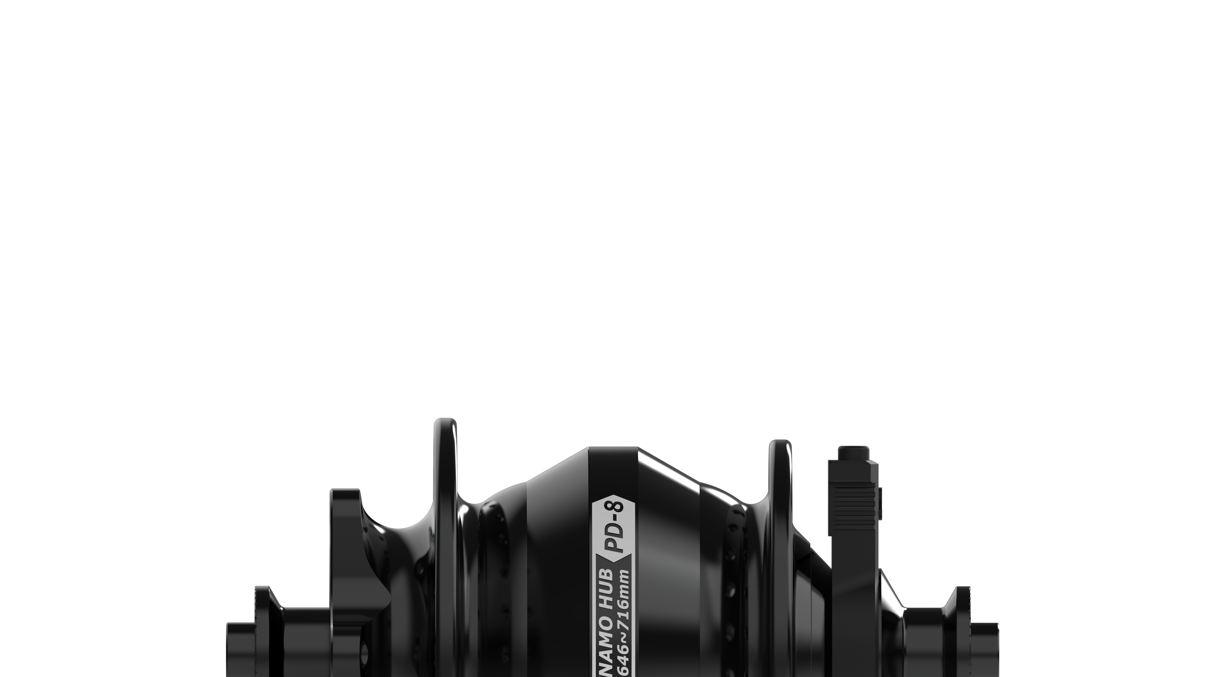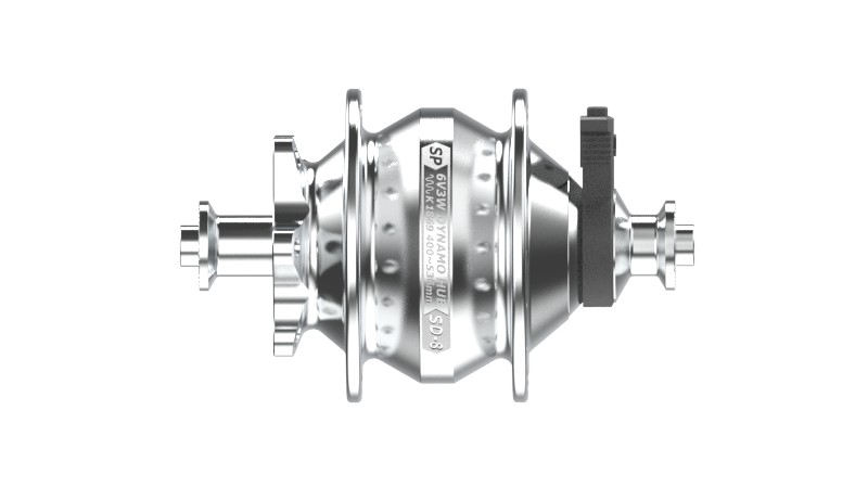 The P-8 Series dynamo hubs not only provide powerful output, but are also the most efficient on the market attaining 72% at 15km/hr. P-Series dynamo hubs are ideally suited to wheel size from 646 to 716mm at 6V3W output. They are very light weight beginning from as low as 375g.